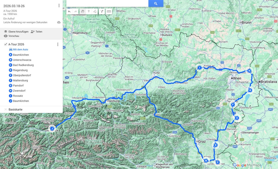 Der Reisebericht Kleine Ost-Österreich-Tour 2026 ist noch in Arbeit!